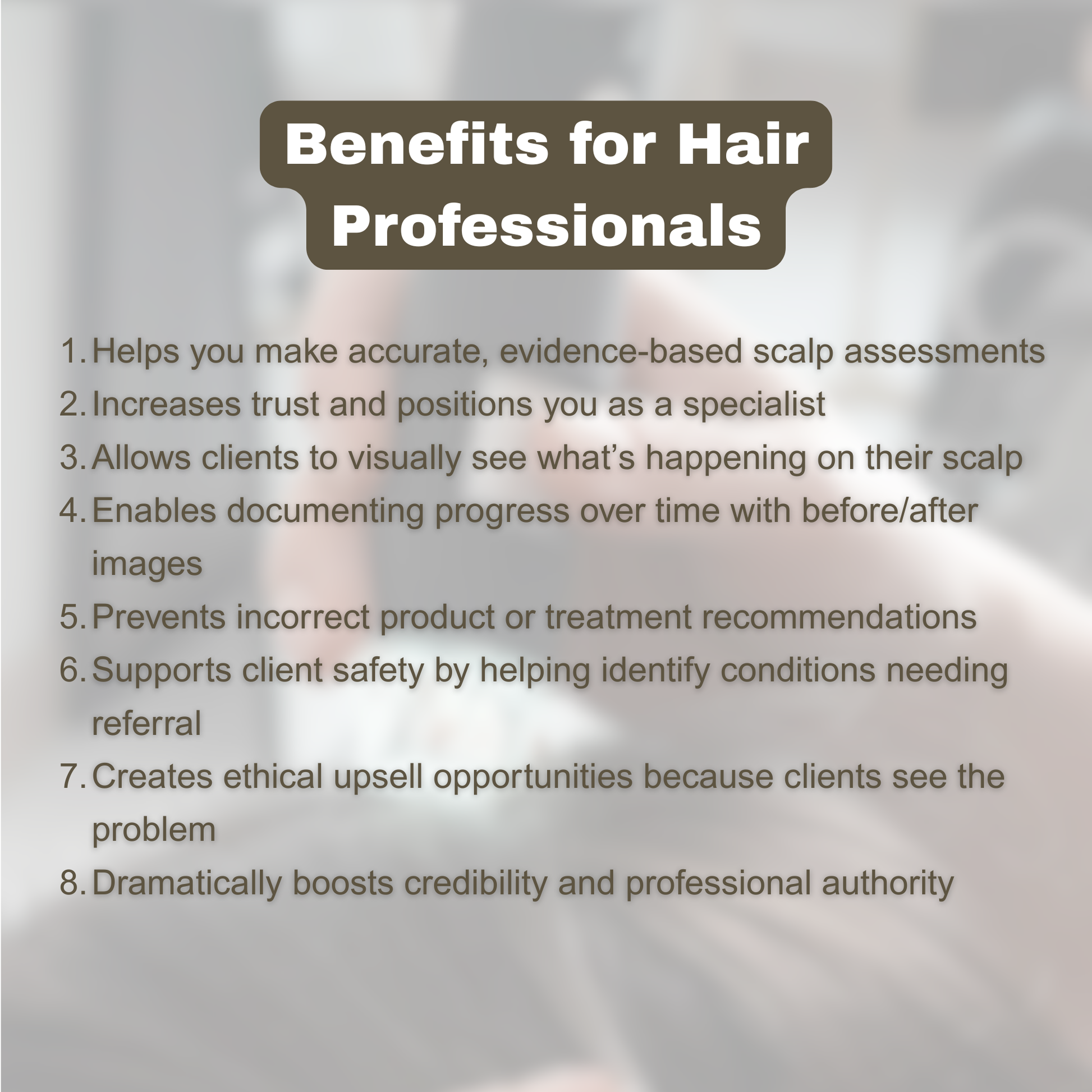 Whether you’re working as a stylist, educator, trichologist, barber, or hair loss specialist, this scope elevates your client experience, strengthens professional credibility, and helps you make smarter product and treatment recommendations. I use mine during new client intakes, progress check-ins, and before/after comparisons. Plus, it consistently leads to better outcomes and higher client satisfaction.